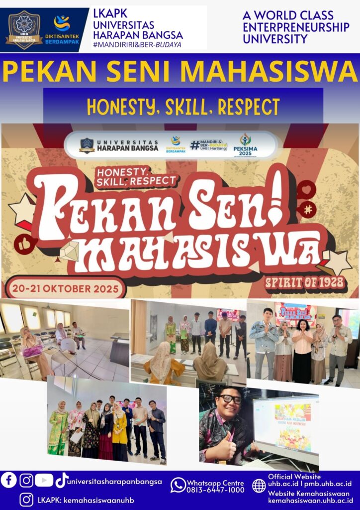 Purwokerto, 21–22 Oktober 2025 — Lembaga Kemahasiswaan, Alumni, dan Pusat Karir Universitas Harapan Bangsa (UHB) menggelar kegiatan penjurian Pekan Seni Mahasiswa Tahun 2025 yang berlangsung selama dua hari, pada 21 dan 22 Oktober 2025. Tahun ini, kegiatan mengusung tema besar “Honesty, Skill, Respect” sebagai bentuk apresiasi terhadap bakat dan kreativitas mahasiswa dalam bidang seni serta […]
