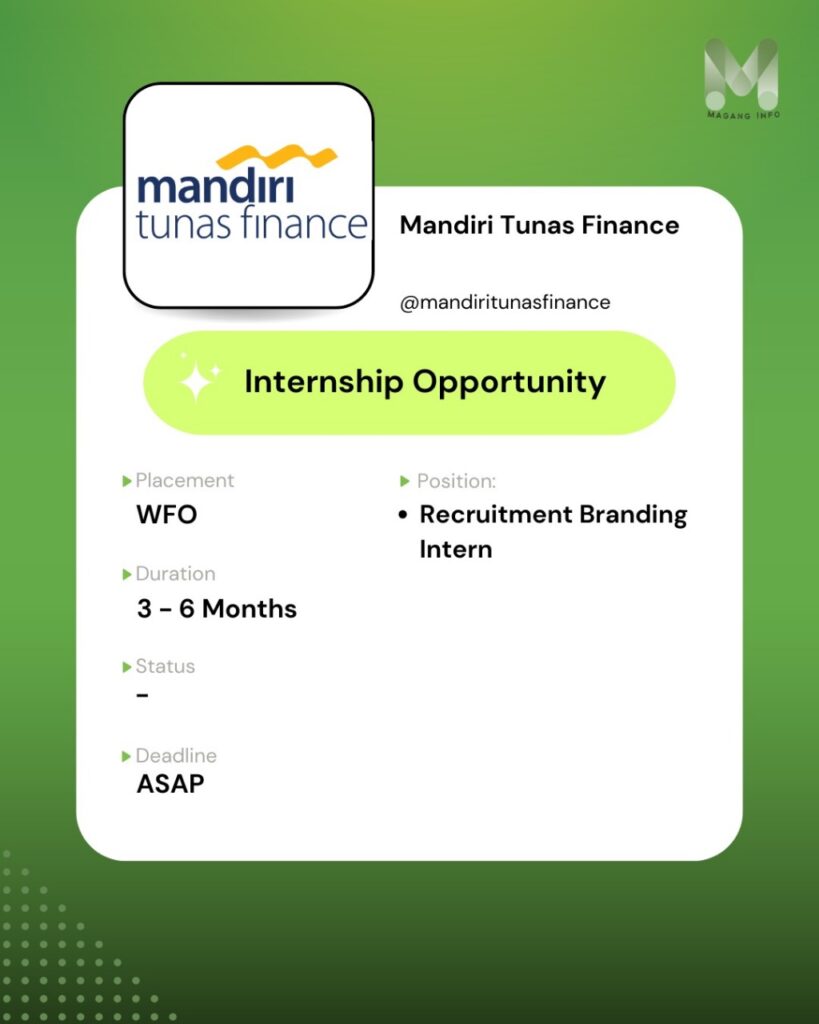 Ingin menambah pengalaman nyata di dunia kerja yang dinamis dan penuh peluang? Kami membuka kesempatan magang untuk kamu yang bersemangat belajar dan berkembang! 💼✨ 📌 Posisi yang tersedia: 1️⃣ Business Development – Belajar strategi bisnis, riset pasar, dan pengembangan kerja sama. 2️⃣ Psikolog / HRD Intern – Terlibat langsung dalam proses rekrutmen, asesmen, dan pengembangan […]