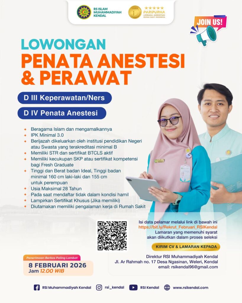LOWONGAN PENATA ANESTESI & PERAWAT RS ISLAM MUHAMMADIYAH KENDAL