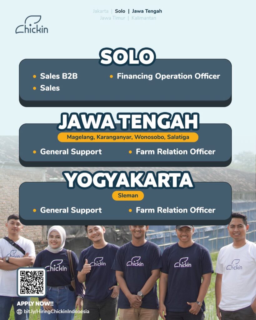 Chickin Indonesia sedang membuka lowongan pekerjaan untuk berbagai posisi strategis di wilayah Jawa Tengah dan Yogyakarta. Untuk penempatan di Solo, tersedia posisi Sales B2B, Sales, dan Financing Operation Officer. Sementara itu, untuk wilayah Jawa Tengah (Magelang, Karanganyar, Wonosobo, Salatiga) serta Yogyakarta (Sleman), perusahaan membutuhkan kandidat untuk posisi General Support dan Farm Relation Officer. Bagi Anda […]