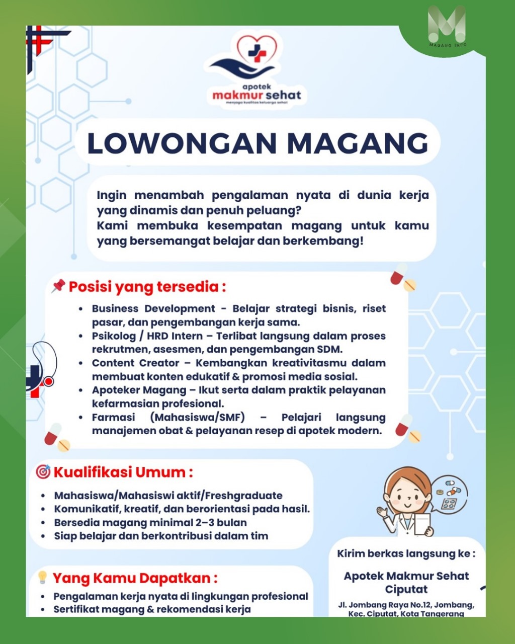 Ingin menambah pengalaman nyata di dunia kerja yang dinamis dan penuh peluang? Kami membuka kesempatan magang untuk kamu yang bersemangat belajar dan berkembang! 💼✨ 📌