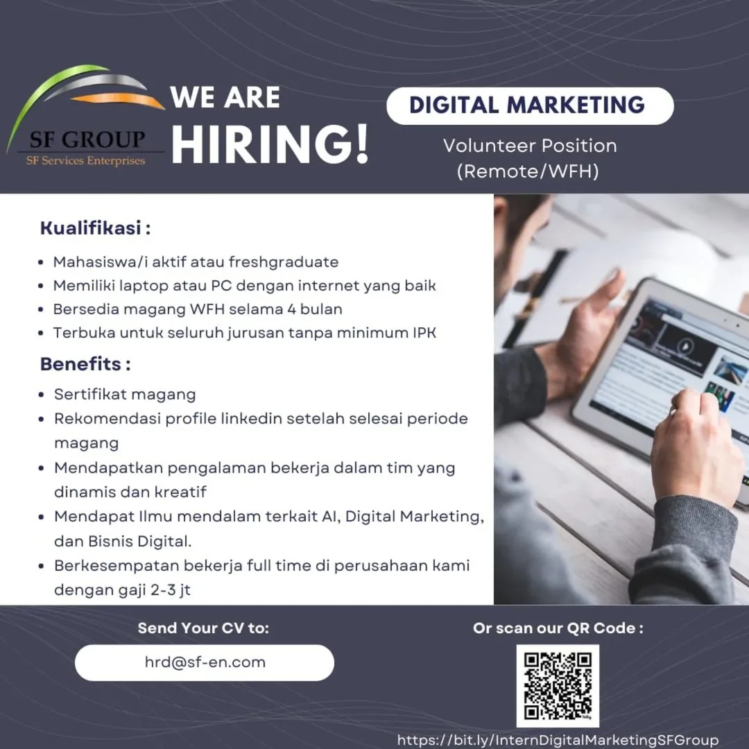 Apakah kamu mencari pengalaman magang yang bisa dilakukan dari kenyamanan rumahmu sendiri? Kamu memiliki kesempatan magang WFH yang menarik di @sfbasecamp!