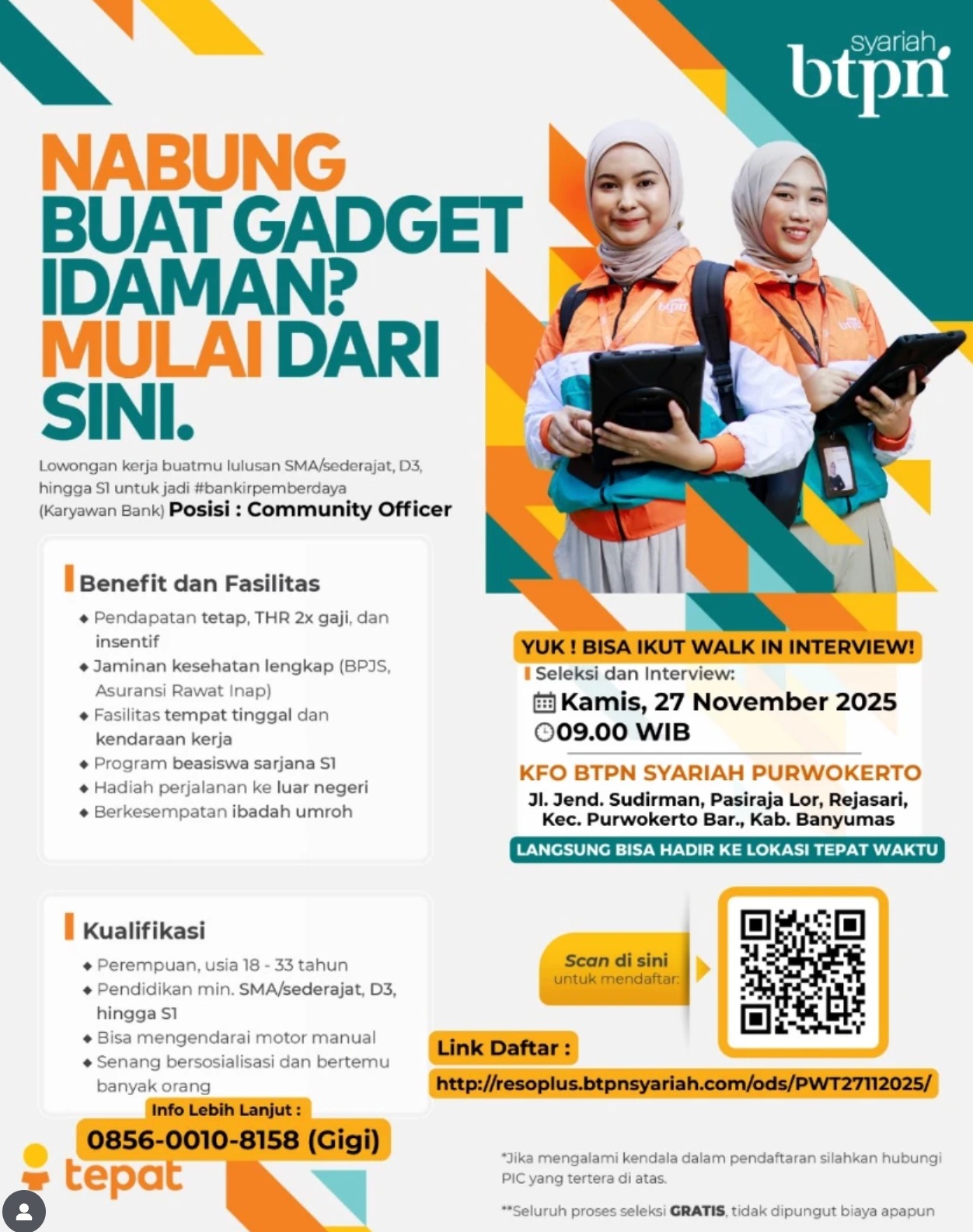 Yuk daftarkan dirimu segera melalui link : http://resoplus.btpnsyariah.com/ods/PWT27112025/