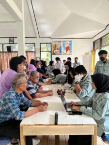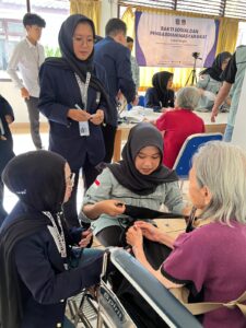 Setelah pembukaan, kegiatan dilanjutkan dengan pemeriksaan kesehatan gratis untuk para lansia yang menjadi peserta utama. Pemeriksaan meliputi cek tekanan darah, gula darah sewaktu (GDS), kadar kolesterol, berat badan, tinggi badan, dan penghitungan Indeks Massa Tubuh (IMT). Seluruh proses pemeriksaan dilakukan oleh mahasiswa HIMADIKA dengan bimbingan dosen keperawatan, sebagai bentuk praktik langsung dari pembelajaran akademik yang telah diperoleh.