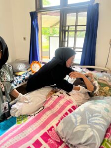 Kegiatan dilanjutkan dengan sesi interaksi sosial yang meliputi hiburan ringan, berbagi cerita, dan edukasi kesehatan sederhana mengenai pola hidup sehat pada lansia. Suasana hangat dan akrab terjalin antara mahasiswa dan para penghuni panti, menciptakan momen kebersamaan yang penuh makna dan kasih sayang.